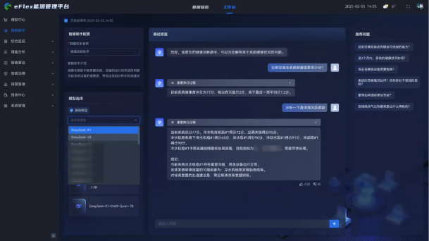 接入DeepSeek后,提供豐富的預(yù)訓(xùn)練模型選擇,涵蓋通用與暖通行業(yè)專用的大規(guī)模及輕量級模型,用戶可根據(jù)具體業(yè)務(wù)場景靈活選用,并支持模型性能評估、快速部署及實時測試,滿足多樣化應(yīng)用需求。